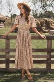 It’s all in the details for this lovely dress! Designed with plates throughout the dress and a ruched mock neck that buttons in the back all in a beautiful beige color. Command the room or take on any event in the beautiful Floral Dress!