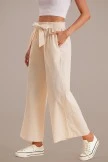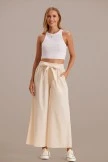 Take your warm-weather looks to a new level with the Beige Ruffle Elastic Tie Waist Wide Leg Pants! Lightweight linen-blend fabric shapes a high waist that features high waisted, paper bag waistline and tie detail. Side seam pockets accent the wide legs as they fall to roomy, ankle-length hems.