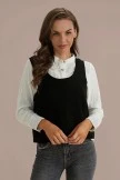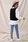Miss Kimberly, you know it’s calling for you. This solid-black sweater vest adorned with a classic cable-knit construction. Sleeveless design featuring a V-neckline highlighted with rib-knit edges, and a flowy fit.