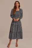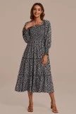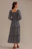One of our top-selling silhouettes is back in a new color and a little upgrade for the season. We’ve added long sleeves with a smocking for the perfect details. The Midi Dress is in a lightweight flowy watercolor with muted black, pink, and green floral colors.