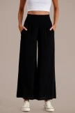 Take on the day in style with the Black Smocked Waist Wide Leg Pants! Lightweight fabric forms these effortlessly chic pants with an elasticized, high-waist, wide-cut pant legs have flow to ankle-grazing hems. Pair with a tucked-in top and your go-to strappy black heels for a full look!