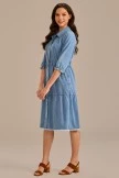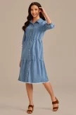 You’re going to love wearing this cute Blue Denim Long Sleeve Tiered Dress! It has top functioning buttons, long cinched sleeves, side pockets, and a tiered skirt. Simply style it with knee high boots, a wide brim hat. Add some gold jewelry pieces to further accentuate the look.