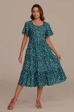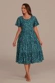 The Blue Floral Short Sleeve Round Neck Tiered Midi Dress features a true modest round neck, short sleeves, and a tiered skirt. Wear this feminine dress every week to church, to a wedding, or any other special event this season!