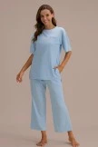 This solid color women 2 piece lounge set is made of premium super soft fabric, casual loose fit, crew neck, short sleeves, pair with drawstring elastic pant, pockets on each side for the cozy casual look.