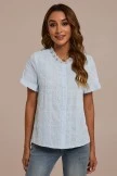 Are you looking for the perfect blue top? The Blue Round Neck Short Ruffle Sleeve Blouse is the one. This top features the ruffle sleeves, cotton textured material with vertical lace inlays on bust ! Pair with blue jeans, white shoes, and wear this blouse from Spring to Fall!