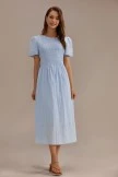 From date nights to dressy office looks. Flattering on every body this thoughtfully designed skirt features a chic blue color, elegant silhouette, and slight stripe throughout the entirety of the skirt.