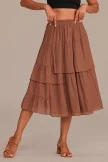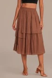 Featuring an asymmetrical layered design, this skirt exudes modern flair and sophistication. The high waistline offers a flattering silhouette, while the rich brown hue adds warmth and versatility to any outfit. Perfect for both casual outings and more formal events, this maxi skirt can be paired with a variety of tops to suit your style.