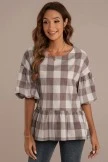 Every good thing you’ve heard about this top is all true! The short puff sleeves are so cute and feminine! The peplum detail is super cute as well! You also won’t find a better print for the season! This top features short puff sleeves, a round neckline, a peplum detail, and a plaid print.