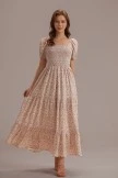 I promise that I’m going to love this dress for the rest of my life. Unique floral pattern, tiered flowy skirt design+ puffy sleeves. It’s comfy + classy which are our two favorite things a dress can have. Wear her exactly how she is or throw on a black denim jacket with booties for an edgier look.