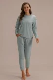 Pajamas for women pants set consists of a sweatshirt top and sweat pants. 70%polyester, 25%cotton & 5%spandex. The top is feature with round neck, long sleeves with patch pocket. The pants have two side pockets and elastic drawstring waistband. Classic solid colors, casual loose fitting, a stretchy feel that’s perfect for the season of relaxation. Easy match it with your slippers, sneakers, jackets, coats and so on. Suitable for spring summer autumn fall winter. Perfect for casual, home, bedroom, bathroom, wedding night, honeymoon, sleepwear, nightwear, loungewear, boudoir or every night and everyday wear. Its casual style makes it not awkward even when guests visit.