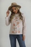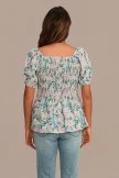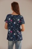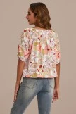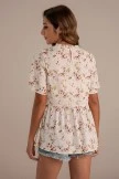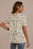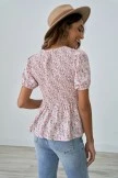 Floral Round Neck 3/4 Length Sleeve Blouse With Elastic Waist