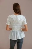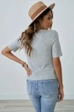 Grey Solid Sweet Short Sleeve Round Neck Cotton Button Shirt