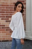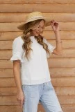 White Hollow Embroidery Flowers Round Neck Short Sleeve Blouse