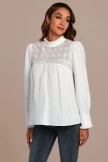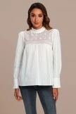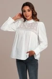 Elevate your spring wardrobe with this must-have top featuring a stunning ruffle mock neck and a floral eyelet lace design! Create a sophisticated date-night ensemble by pairing it with dark denim jeans, strappy high heels, and dainty gold jewelry to complement the overall look.