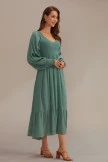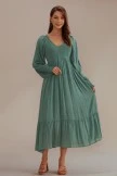 Some day’s you just have to create your own sunshine, and this dress is a great way to get started. With a dark sage dotted print + silky flow, you can twirl all the gray clouds away. This dress also features a tiered skirt, elastic cuffs, and elastic at shoulders and waist. To really bring on the sunshine, match with your mini-you.