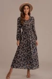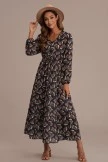 You’ll be thanking your lucky stars for the floral dress. This elegant dress comes in a navy color and features a floral pattern covering every inch. The long balloon sleeves are flowy to match the flow and the tiered details of the skirt piece. This midi-length includes a V-neckline and a cinched waistline to make this dress extremely flattering.