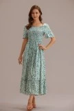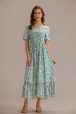 So pretty and femme, this maxi dress is featured in a longline tiered silhouette with oversized puff sleeves and smocked bodice for the perfect, effortless look.