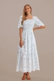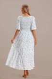 This charming and feminine maxi is a must-have for any special occasion. The Floral Short Sleeve Square Neck Smocked Tiered Maxi Dress comes in vibrant floral prints. Features a smocked bodice, square neckline, short flutter sleeves, and flowy skirt with a one tier ruffle detail towards the bottom.