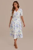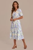 Step into enchantment with the floral dress. This midi dress features a charming floral print and functional buttons for added style and convenience. The v-neckline adds an elegant touch, while gathered shoulder and bust details create a whimsical and playful look.
