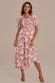 We are so in love with the gorgeous color and perfect modest fit of this dress! Features include a slight v neckline, short puff sleeves and a gorgeous flowy skirt. Get yours today!