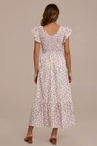 This Floral V Neck Ruffle Short Sleeve Smocked Midi Dress offers a beautiful combination of design and comfort. Made for any time of the year, this dress features a ruffle cap sleeve, midi length, dainty floral pattern. Let the dress be the statement piece for your next special occasion.