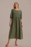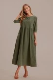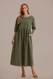 This round neck midi dress features 3/4 sleeves for a practical and chic look! It is a relaxed fit to be a comfy maternity dress. Perfect for strolling downtown in style! Suitable for casual, formal work occasions. It’s a stylish look for pairing with berets in the winter or hats on a breezy spring/fall day!