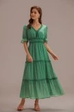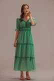 Once you slip into this gorgeous ruffled maxi dress, you feel like you are living in a dream! The fit is wonderfully flattering and all of that ruffed detailing is so feminine and sweeet! This maxi is perfect for attending a wedding or going on a fancy date night! This dress features bubble half sleeves, a v-neck, ruffled detailing, and a defined waist.