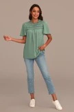 If commuting comfort is your thing, look no further than this green top! Features include a ruffled neckline. It’s an everyday essential that can be worn with denim or white jeans, slippers, jewelry and a stylish crossbody bag.