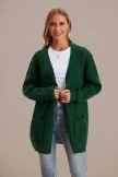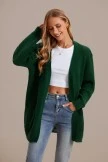 Make sure your wardrobe is ready for the next season with theGreen Knit Open Front Cardigan! Stretchy knit shapes this cardigan sweater that has an open front and long sleeves with drop shoulders. The long silhouette has two front patch pockets. This cardigan is perfect for layering over a tee and jeans for a casual look!