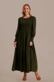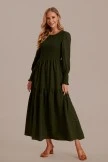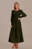 If you cultivate an aura of elegance, you need the Green Lantern Sleeve Round Neck Smocked Maxi Dress ! Bodice boasts a round neckline and a gathered detail at the front, with ruffle hem.