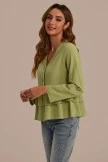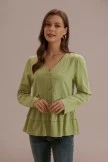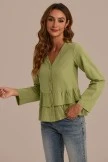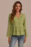 This top features tiered layer peplum and button front details. Easily pair this top with denim, skirts, + trousers, a top that does it all! The fit. The material. Immaculate.