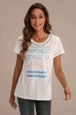 If creating sweet seaside memories is your calling, this Happy Waves Graphic Round Neck Short Sleeve Tee is for you. Squiggle-wave accents frame the front quote in hues of blue.