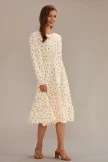 The dress is not only stunning but features a three tiered skirt, shop sleeves with a smocked cuff, and a keyhole button closure on the back neckline. How could you pass up on that?