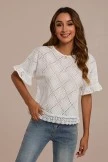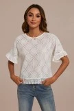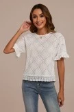 If your summer vibe is staying cool and looking oh-so-cute, you need this Top! Lightweight woven cotton boasts vintage-inspired embroidery throughout as it shapes this darling top that has short dolman sleeves (with sweet ruffled cuffs) and a rounded neckline. Boxy bodice is semi-sheer and has a wide band of crochet lace trim at the hem. Functional button placket at back.