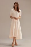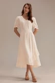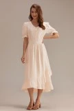 The Midi Dress also has split ruffle detailing, Elastic at arm cuff, and lace detail on bust with functioning buttons down. I think we found the perfect summertime dress. Can I count on you to wear this all summer long?