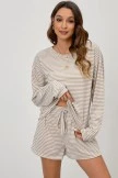 This set features soft material, stripe design, and drawstring shorts. Pair the top with a pair of jeans and the shorts with a cute pullover. We love a versatile piece and this set is two in one!