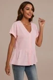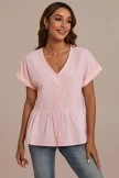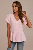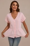 Add this gorgeous light pink v neck top to your essential closet staples! Features include a peplum style hem, v-neckline, and stunning button-front decorative details. Pair it with denim jeans and comfy white sneakers for a cute casual everyday look.