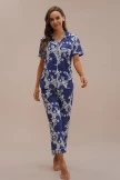 The Loungewear Set features a short sleeve top that offers a folded collar, floral leaf design, center front button closure, chest front patch pocket, and a straight hemline. The pajama bottoms features a fitted waist, matching design, and a straight fit.