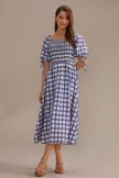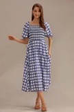 This beautiful blue plaid print midi dress is the perfect combination of comfortable and chic. Featuring a smocked bodice and puff sleeves with a draw string bow detail, this dress is sure to be your favorite!