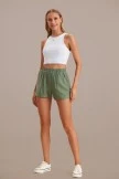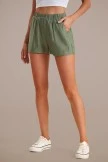 Enjoy the day with your new fave! The Olive Elastic Waist Pocketed Shorts are composed of linen that forms a high-rise silhouette and a elastic waistband and two front pockets.