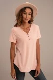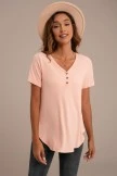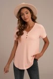 This Peach Ribbed Short Sleeve Button Detail Top will go together with your closet perfectly! The solid hued top featuring short sleeves, a v-neck with button details and ribbed details. Pair this with a jeans and a cute pair of sneakers!Â