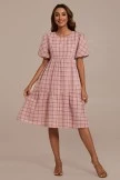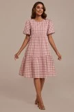 The print of this dress we use pink color, this plaid is really beautiful. We made the sleeves loose, and the hem design is very elegant. Don’t miss this dress for holiday occasions.