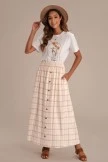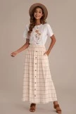 The soft tones give the skirt an airy and graceful look giving you so many styling options! The details were so thought out from the buttons all the way to the lining on the inside! You will be able to feel comfortable and stylish with this lovely maxi skirt!