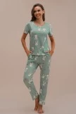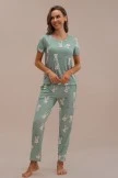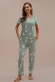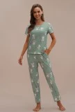 The cute Loungewear Set features a short sleeve top that offers a round neck, rabbit print, side pockets, and a straight hemline. The pajama bottoms features a fitted waist, matching design, and a straight fit.