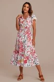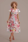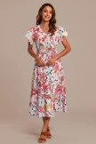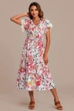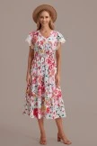 For this dress, we specially designed the sleeves with lace edges, the waist of the skirt is a pleated design, and there are three buttons on the chest. The print is so pretty and perfect for the holidays.