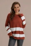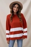 This classic sweater will be the most versatile piece in your closet this fall. Pair with your favorite jeans and sneakers or with a flowing skirt and boots. Designed with red and white stripe, this sweater features a chunkier knit fabric all over except for the front panel which is a tighter knit.Â
