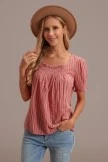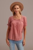 This vibrant rust red striped top will bring your entire look to life! It’s perfect for those occasions when you want to dress up just a little! Style with white shorts or jeans along with some open toed flat sandals and a white crossbody bag to complete the look.