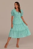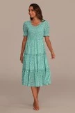 This lovely sage floral pattern dress is breathtaking! We are so in love with the elegance of this dress with its classy short puff sleeves and tiered ruffle skirt this dress it’s absolutely perfect for Spring! Get yours today, these beauties will go fast and is baby bump friendly!