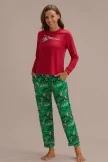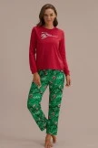 These Red and Green Santa’s Sleigh Matching Family loungewear feature Santa Claus along with his sleigh and reindeer on the green pajama pants. There’s fun printed graphics with “Have a Merry Christmas!”