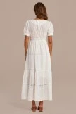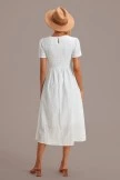White Short Sleeve V Neck Cotton Maxi Dress With Zipper Back